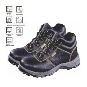 – Material: De lona con cuero y acolchado; con cierre al costado.– Resistente a la fricción y absorción brindando frescura, cordura antidesgarro e impermeable.– Proceso vulcanizado.– Planta caucho.– Con ventilación.– Suelas antiderrapantes,– Ojillos y/o ojetes que no se oxiden,– Color negro.– Reforzada con punta de acero / puntera en material composite vetro.– Costura reforzada.SKU: 5487FB8/51 -