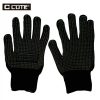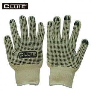 • Puntos de PVC con refuerzo en uñas y entre dedos (pulgar e índice), son de color negro. Facilitan el trabajo con objetos o superficies resbalosas y aumentan la protección contra la abrasión.